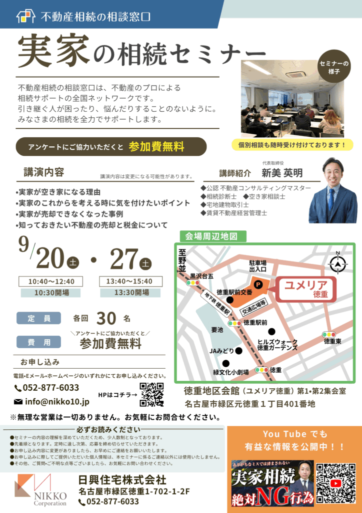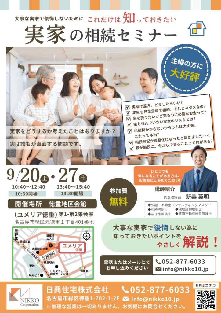 9月は実家の相続セミナーを開催いたします!