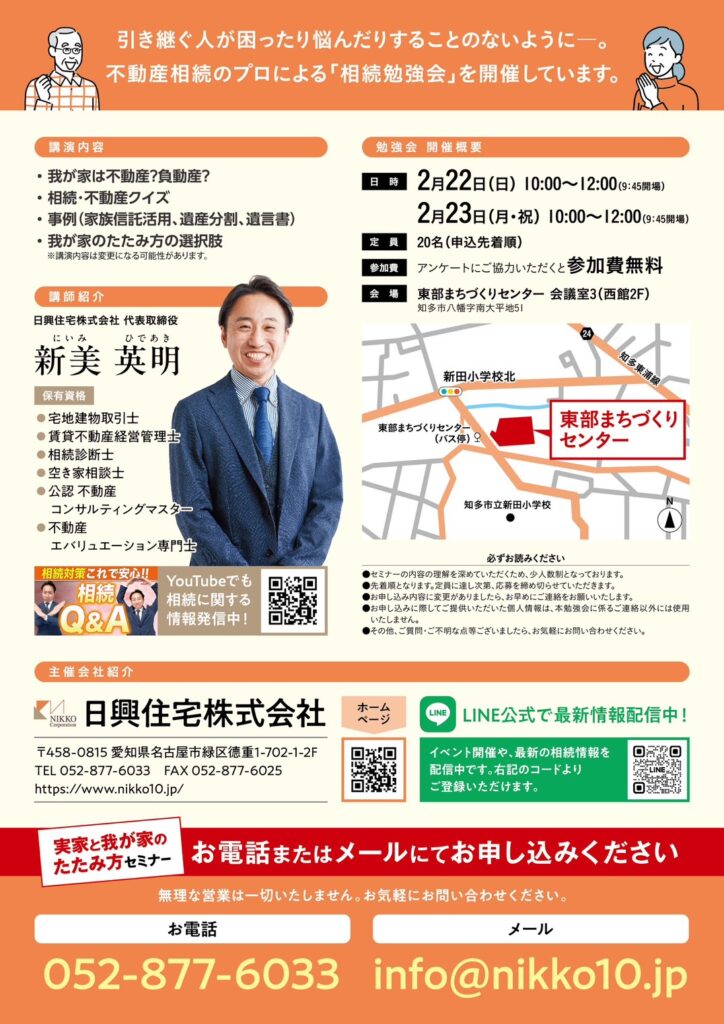 1月に開催し、大変ご好評いただいた「実家と我が家のたたみ方セミナー」を この度、東部まちづくりセンターにて初開催することが決定しました!